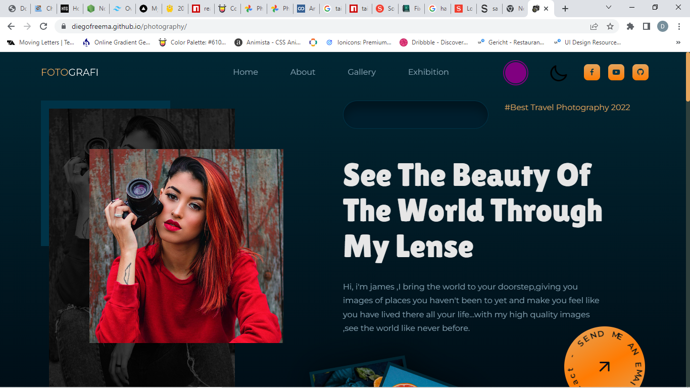 A photography website made with css, html and javascript....this shows the gallery of the photographer..check out the beautiful animations and lovely UI